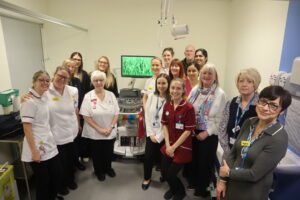 Colleagues from Macclesfield Hospital’s Breast Care Unit welcomed inspirational fundraiser Gena Moors to see the new ultrasound machine funded by her ‘Splash of Pink’ campaign.